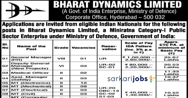 ভারত ডাইনামিক্স লিমিটেডে ২৩০+ ম্যানেজমেন্ট ট্রেইনি, শিক্ষানবিস এবং অন্যান্য পদের জন্য বিডিএল নিয়োগ ২০২৬